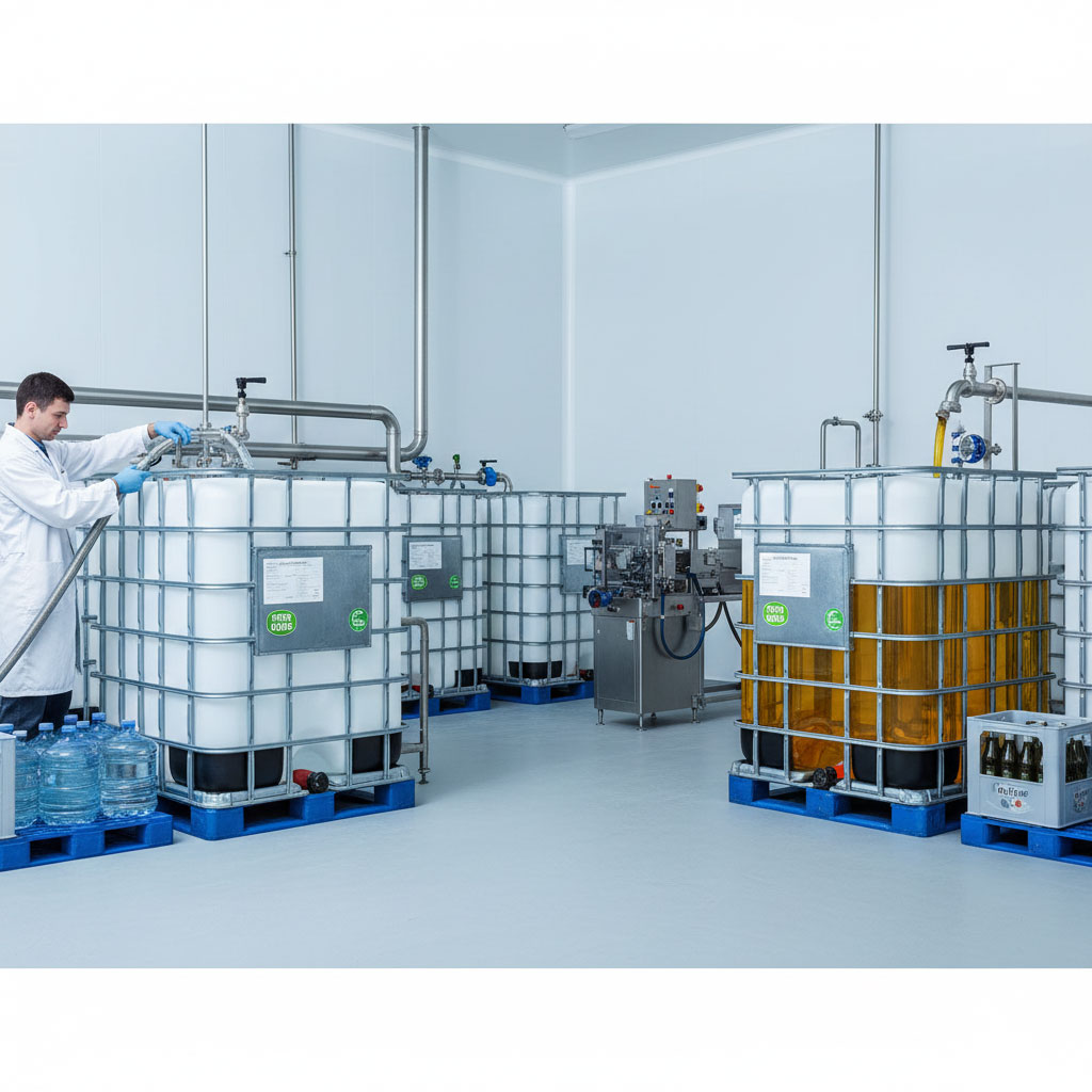 در تولید آبمیوه، نوشیدنی های غیر الکلی و محلول های بهداشتی، IBC امکان نگهداری بهداشتی مواد اولیه را فراهم می کند.