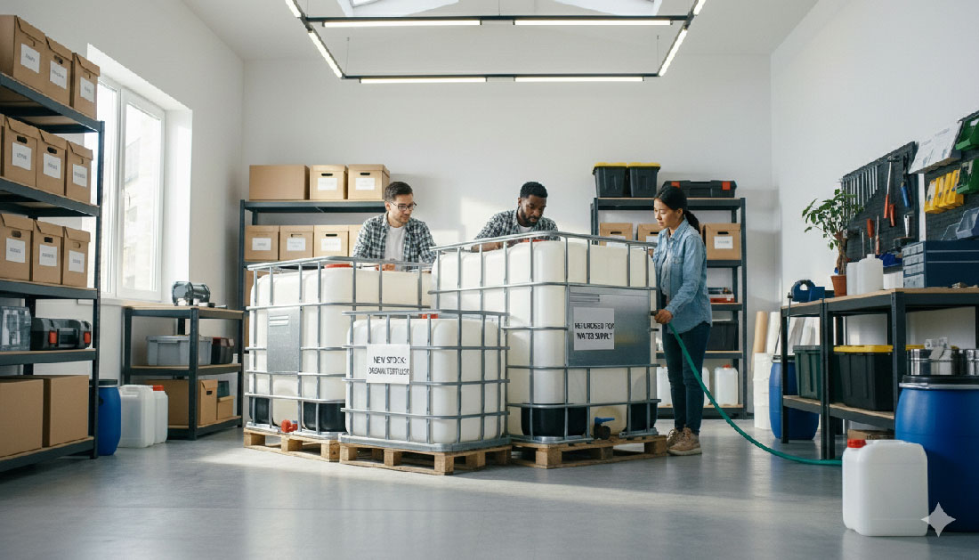 معمولاً مخزن IBC هزار لیتری، محبوب ترین گزینه برای شروع است. این حجم نه آن قدر بزرگ است که سرمایه زیادی درگیر کند و نه آن قدر کوچک که خیلی زود پاسخگوی نیاز نباشد.